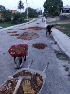 En atención al deterioro progresivo de algunas calles del Residencial Marjorie, la Junta de Vecinos organizó una jornada comunitaria de mitigación, enfocada en el relleno manual de hoyos mediante el uso de carretillas y materiales de compactación, con el fin de mejorar el tránsito y prevenir accidentes.